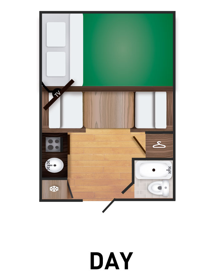 •  2 camas para 3 adultos (1 doble, 1 single)