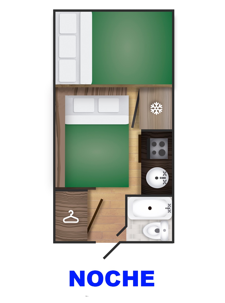 Baño completo con ducha, WC, lavamanos, agua fria, agua caliente Ducha exterior Radio independiente/CD/AUX Sabanas, almohadas, frazadas, cubrecamas, toallas Calefaccion