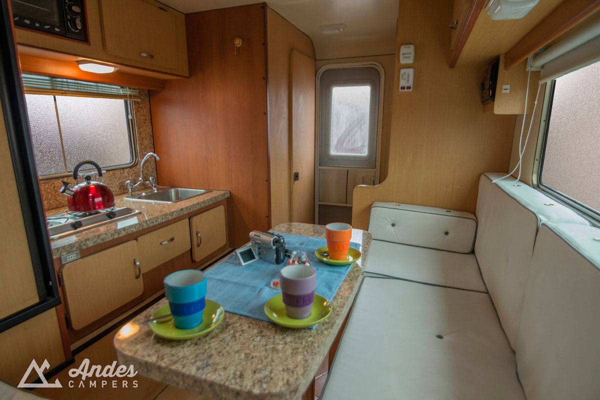 Estanques de agua (Litros), fresca:80 / grises: 80 / negras:70 Parrilla porta equipaje superior Cable puente de bateria Mapas de ruta Chile y Argentina